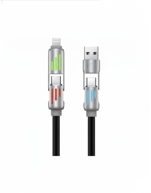 Carga ultrarrápida con estilo: potencia, iluminación RGB y versatilidad en un solo cable. Ideal para quienes buscan velocidad y practicidad.